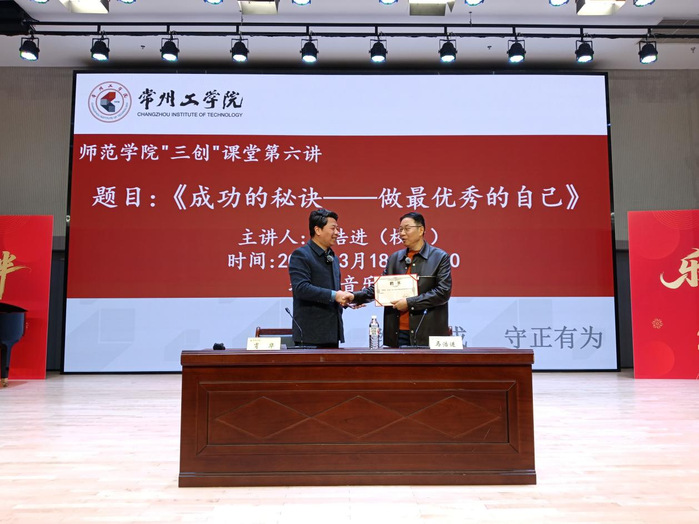 3月18日下午,师范学院“三创”课堂第六讲《成功的秘诀——做最优秀的自己》在粹化楼音乐厅开讲。杰出校友、退役军人、江苏天马万象集团董事长马浩进担任主讲人,全院160余名同学参加,活动由学院党委书记肖华主持。