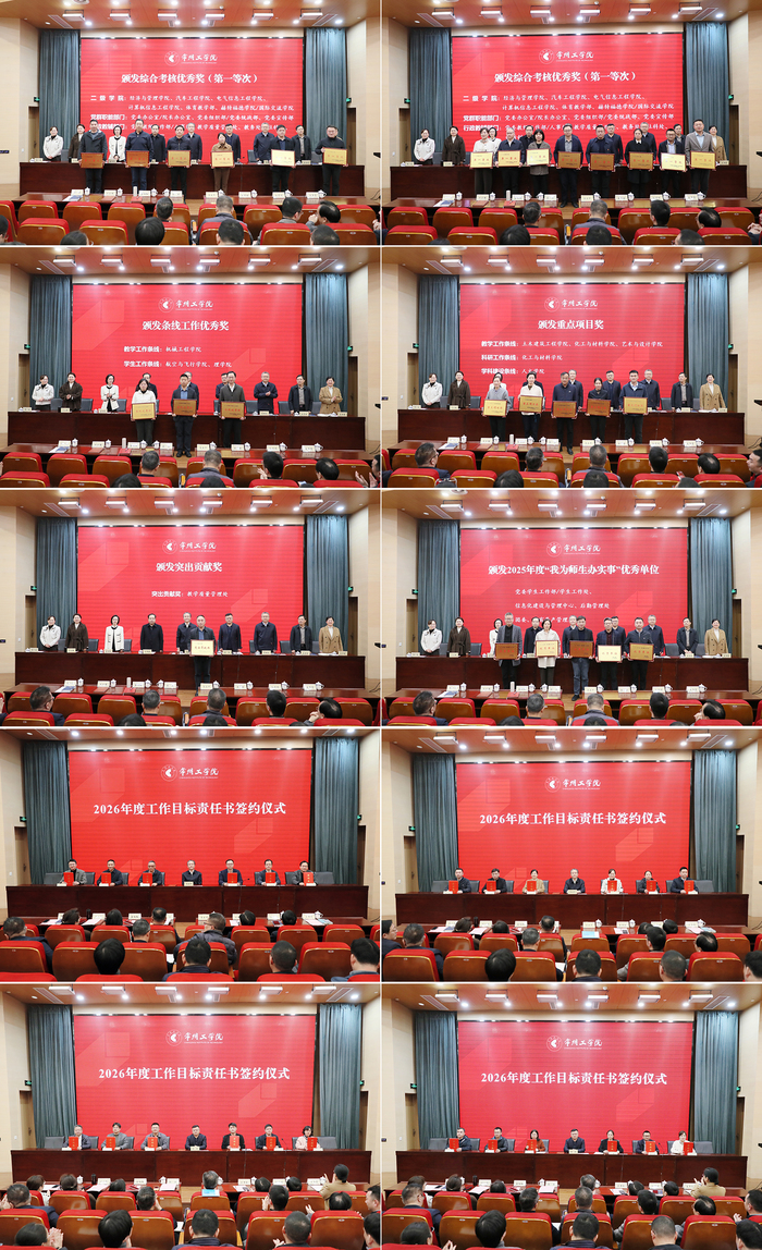 会上,校党委副书记王传金宣读表彰文件。荣获2025年度综合考核优秀奖“第一等次”、条线工作优秀奖、重点项目奖、突出贡献奖以及“我为师生办实事”优秀单位的二级单位代表依次上台领奖。