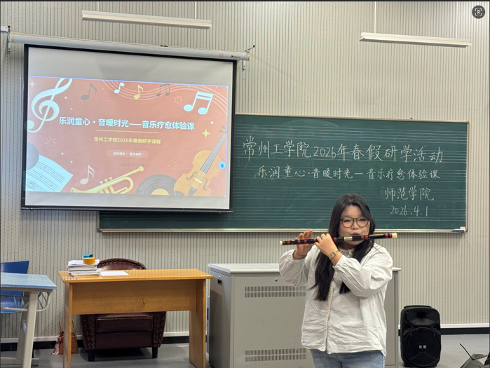为响应学校春假研学号召,丰富中小学生春假生活,4月1日下午,师范学院团委、音乐系学生党支部在粹化楼118教室开展音乐疗愈体验公益课。活动以传统民乐与红色旋律为纽带,为青少年带来沉浸式艺术美育体验,12名大学生志愿者、30余名中小学生及家长参与其中。