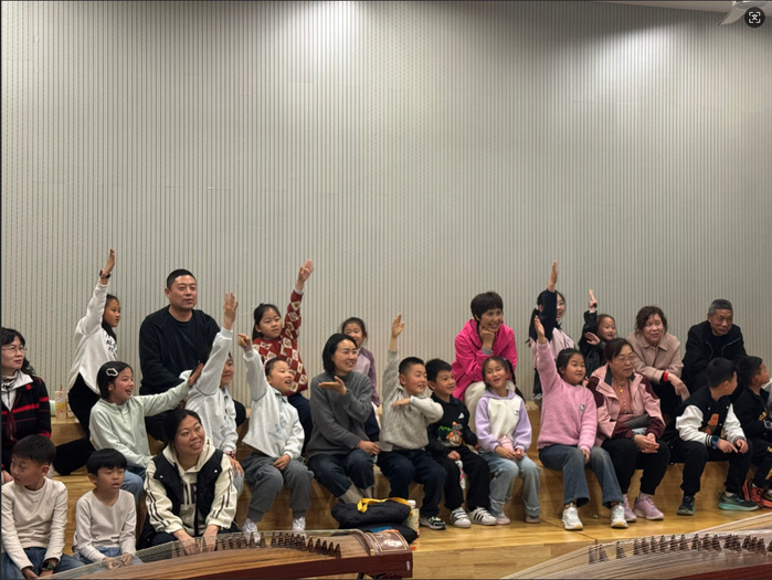活动设置筝筝日上、古韵流芳、经典咏流传、重温红歌四大环节,志愿者带来古筝合奏《爱我中华》、独唱《幽兰操》《青玉案・元夕》、钢琴弹唱《万疆》、竹笛独奏《皖乡恋歌》、红歌《映山红》等精彩节目,融合民族器乐、古典声乐与红色文化,兼具美感与治愈性。现场互动猜歌环节,让孩子们在旋律中放松身心、厚植家国情怀。