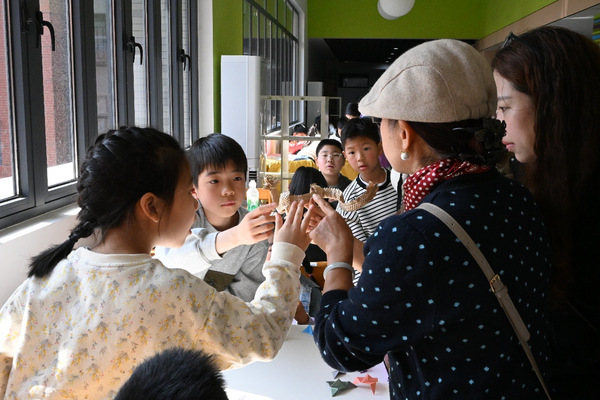活动将数理几何原理融入折纸技法,通过现场教学与分组协助,引导中小学生完成立体纸球制作,直观感受形态变换的逻辑之美。活动还展示了我校学生《龙神》《恐龙骨架》等折纸作品,有效激发了学生的创作灵感与艺术兴趣。