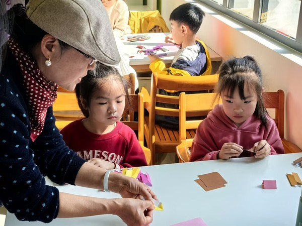 4月2日,艺术与设计学院在元任楼B座研创空间举办“几何魔法师 从纸片到星球”中小学生春假研学活动。唐丽老师团队携手10余名志愿者,带领50名中小学生开展折纸艺术实践。