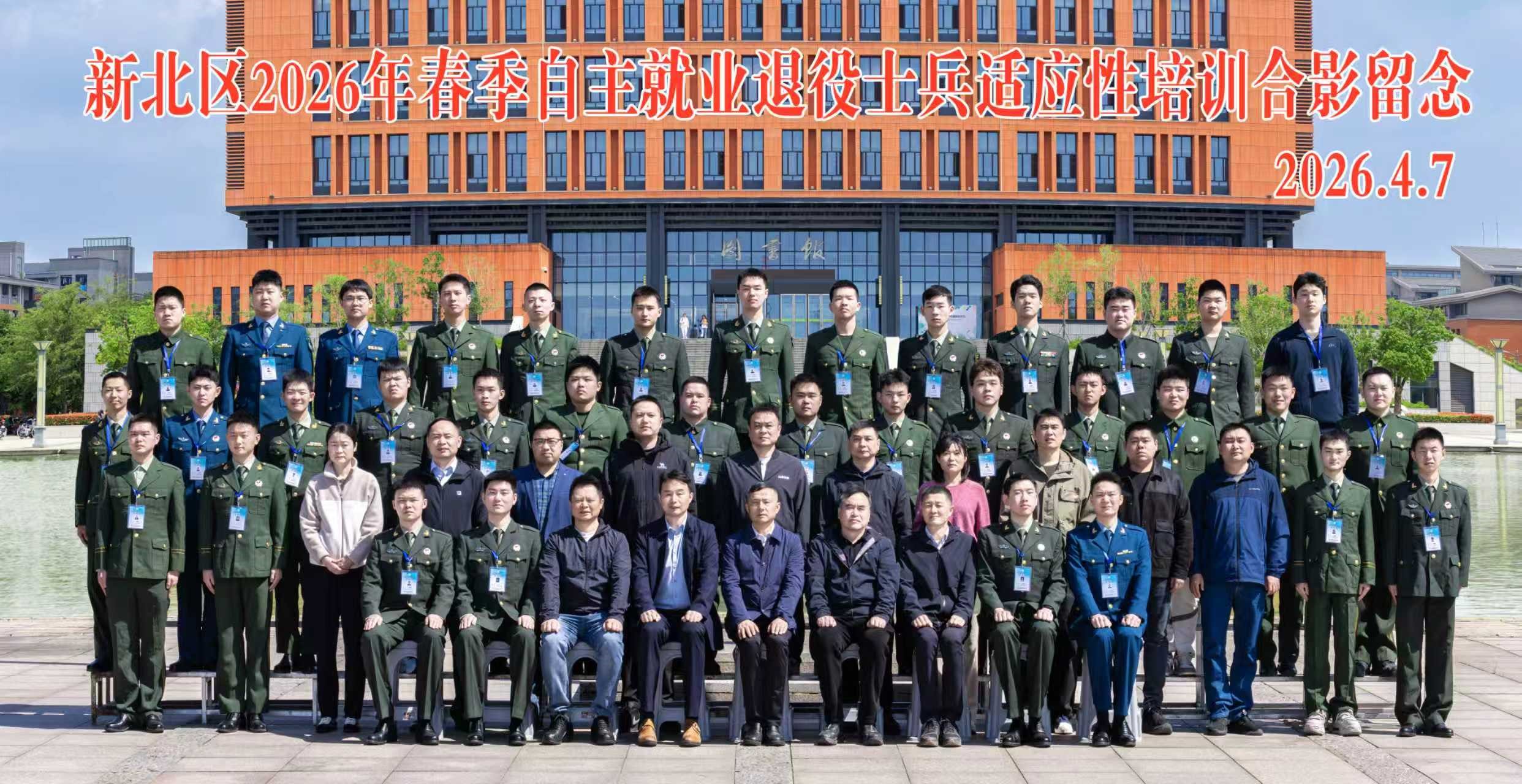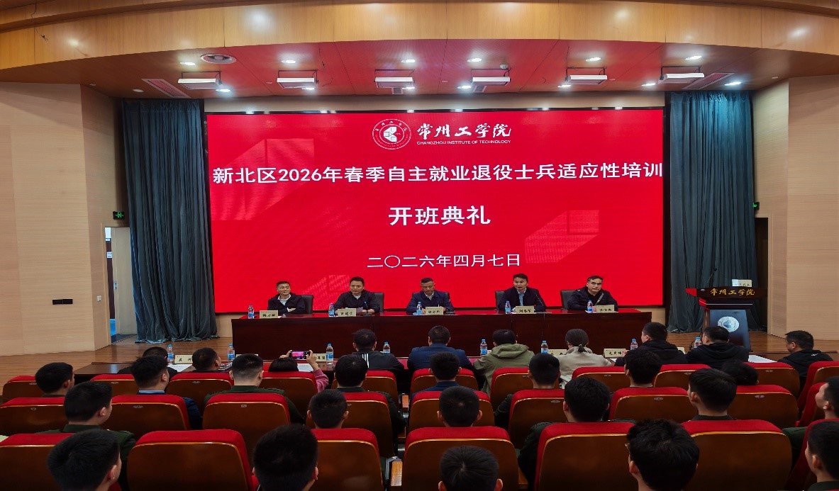 4月7日上午,新北区2026年春季自主就业退役士兵适应性培训开班典礼在我校举行。新北区退役军人事务局局长陶文忠,我校党委常委、副校长刘春节,继续教育学院院长金卫东出席典礼,新北区退役军人事务局安置就业处处长蒋建荣主持活动,全区各街道、乡镇人武部负责人及参训退役军人参加。