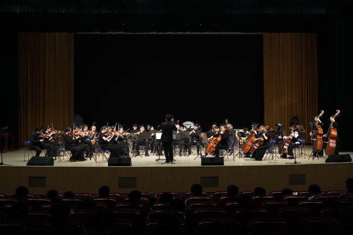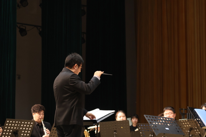 音乐会在激昂磅礴的《歌唱祖国》中拉开序幕,点燃了全场师生的爱国热情。随后,接连演绎了《钢铁洪流进行曲》的雄壮豪迈、《在那遥远的地方》的深情悠远、《Ticotico》的灵动欢快、《第二圆舞曲》的浪漫唯美、《扎西与卓玛》的浓郁民族风情以及《康康舞曲》的热烈奔放。乐团精湛的技艺与饱满的情感,深深打动现场每一位观众。